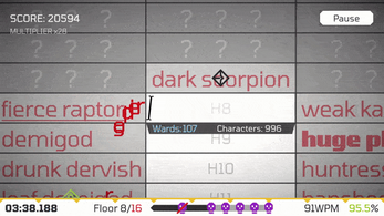 I watched AsWhalerGamer play and decided to come and try it out as well. Really fun. I think having to manually sort through the cells slowed down my typing, but it was certainly fun. I really just rushed to the words that sent me to the next floor, as after running through one of the 16 floor modes it seemed like the thing to do. Still, as someone who loves a good spreadsheet this was a fun game to play!
