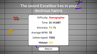 Big update: you can now view your past game records to see how much you’ve improved! The date, completion time, WPM, and score are all shown in a neat table. Save a record of each run after win or l...